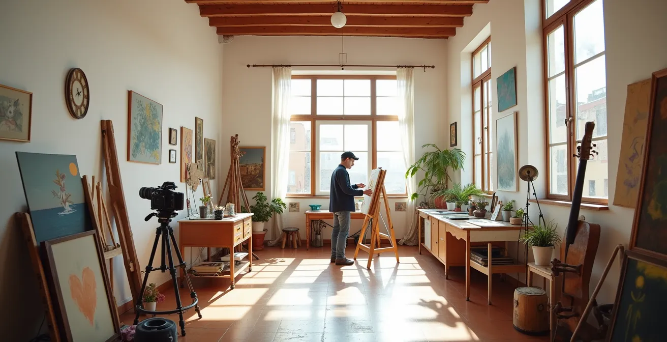 ¿Te sientes abrumado por un mar de intereses creativos? Un día te fascina la fotografía urbana, al siguiente sientes la llamada de la acuarela y, de repente, una idea para un relato corto te mantiene despierto. Esta curiosidad es un motor poderoso, pero a menudo viene acompañada de una voz paralizante que susurra: «debes elegir una sola cosa y ser el mejor en ella». Esta presión por la especialización prematura es uno de los mayores bloqueos para la creatividad genuina. Nos han vendido el mito de que para ser un «verdadero» artista, hay que dedicar 10.000 horas a una única disciplina, ignorando que la dispersión es un signo de debilidad.