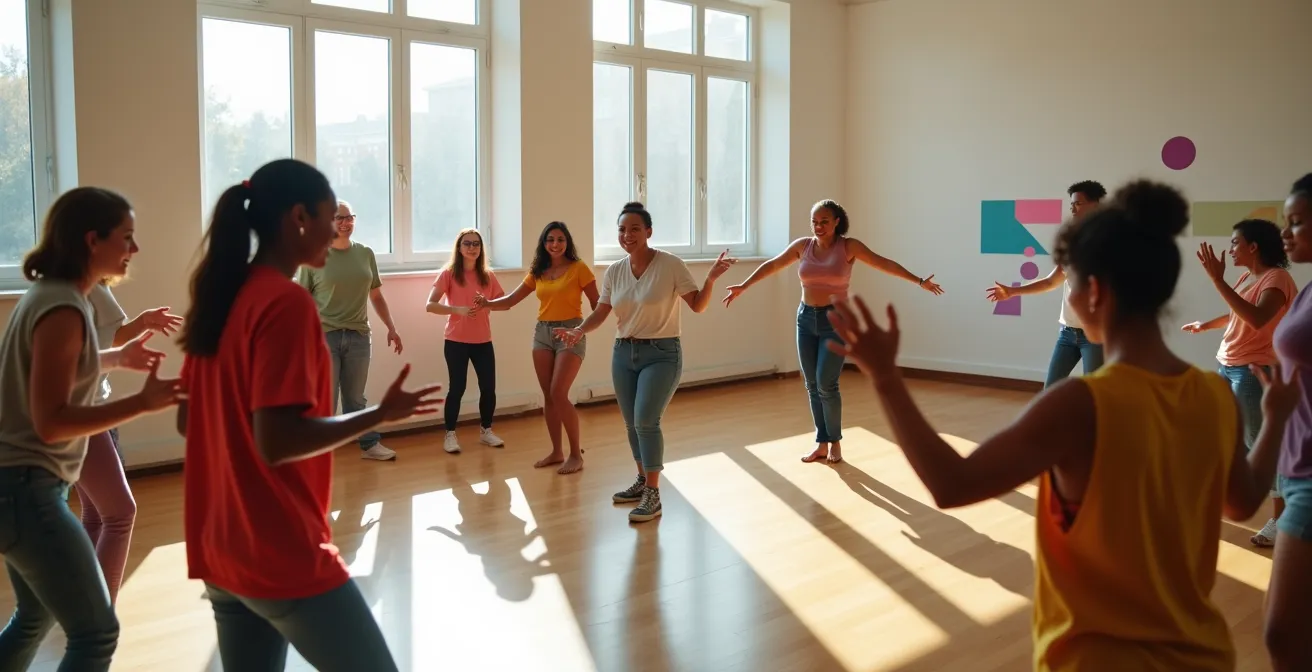 - Calentamiento de «espejo corporal»: Los participantes imitan los movimientos del facilitador para crear una sintonía grupal no verbal.