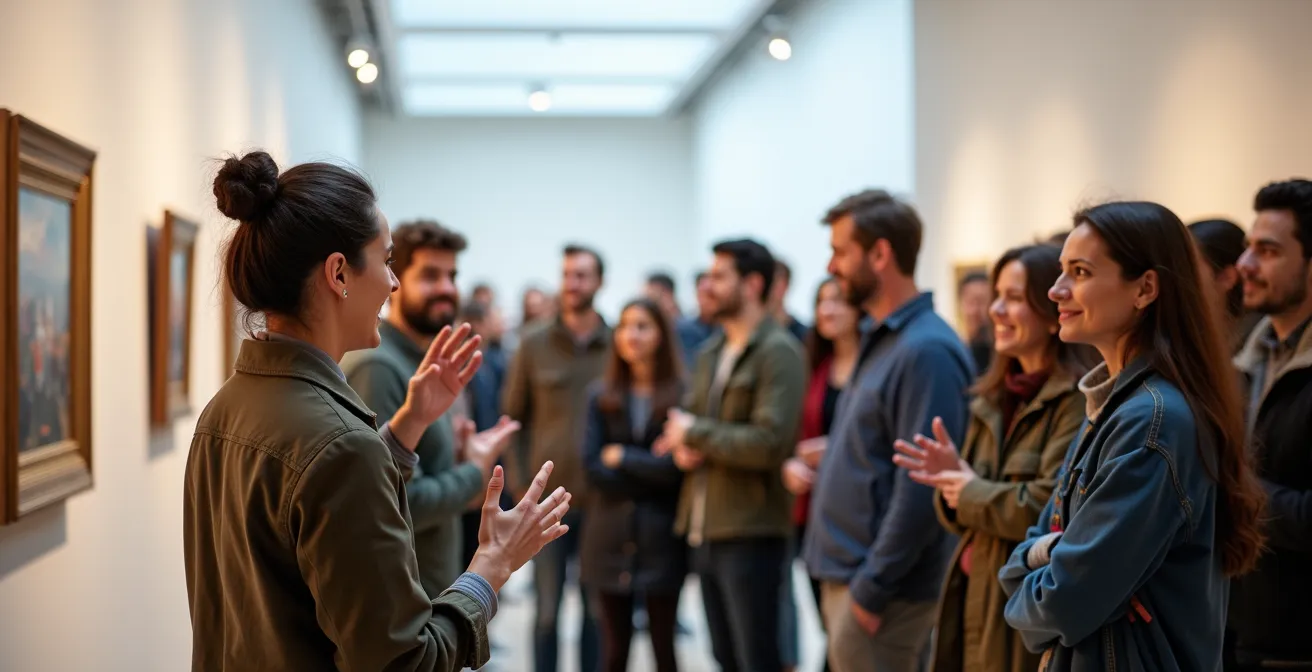 ¿Alguna vez has preparado con esmero una charla sobre arte, cargada de datos y análisis, solo para ver cómo la atención del público se desvanece a los pocos minutos? Es una frustración que comparten muchos artistas, educadores e historiadores en España. Sientes que tienes un conocimiento valioso que compartir, pero un muro invisible parece levantarse entre tu saber y el interés de una audiencia no especializada. La tentación inmediata es «simplificar», recortar contenido o recurrir a anécdotas superficiales sobre la vida de los artistas, con la esperanza de retener la atención.