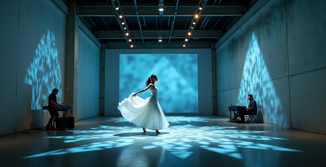 El cubo blanco de una galería de arte ofrece neutralidad visual y un control lumínico casi absoluto. Es ideal para obras donde se busca un foco total en la pieza, aislándola de cualquier distracción contextual. La obra se presenta como un objeto de contemplación puro. Por el contrario, la caja negra de un teatro proporciona una oscuridad envolvente y una acústica controlada, facilitando una inmersión sensorial completa. Permite al creador dirigir la atención del espectador con una precisión quirúrgica, jugando con la aparición y desaparición de estímulos en el vacío. Finalmente, un espacio industrial o no convencional (una nave, una fábrica abandonada) introduce una variable poderosa: la arquitectura y la historia del lugar se convierten en co-protagonistas. La escala monumental, las texturas «crudas» y la memoria del espacio entran en un diálogo inevitable con la pieza, anclándola en un contexto social y físico único.